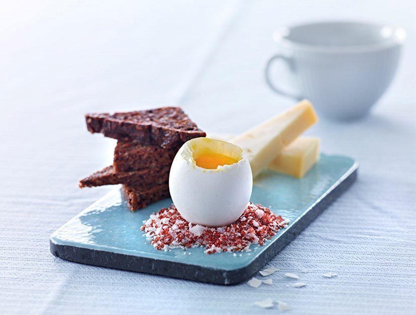 Häll kallt vatten i en kastrull och låt koka upp. Fortsätt koka äggen i 4-6 minuter beroende på hur stora de är. Rosta samtidigt brödet i brödrosten eller i pannan. Lägg ost och senap på det rostade brödet, salta och ät det löskokta ägget. Smaklig måltid!